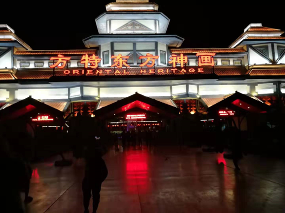 因為有一天的時間,我們準備把各種節(jié)目都看我。我們首先看的是《天河之戀》,做在可以升降平臺的上面,仿佛置身與其中,遙望牛郎和侄女鵲橋相會,觀看效果很好。