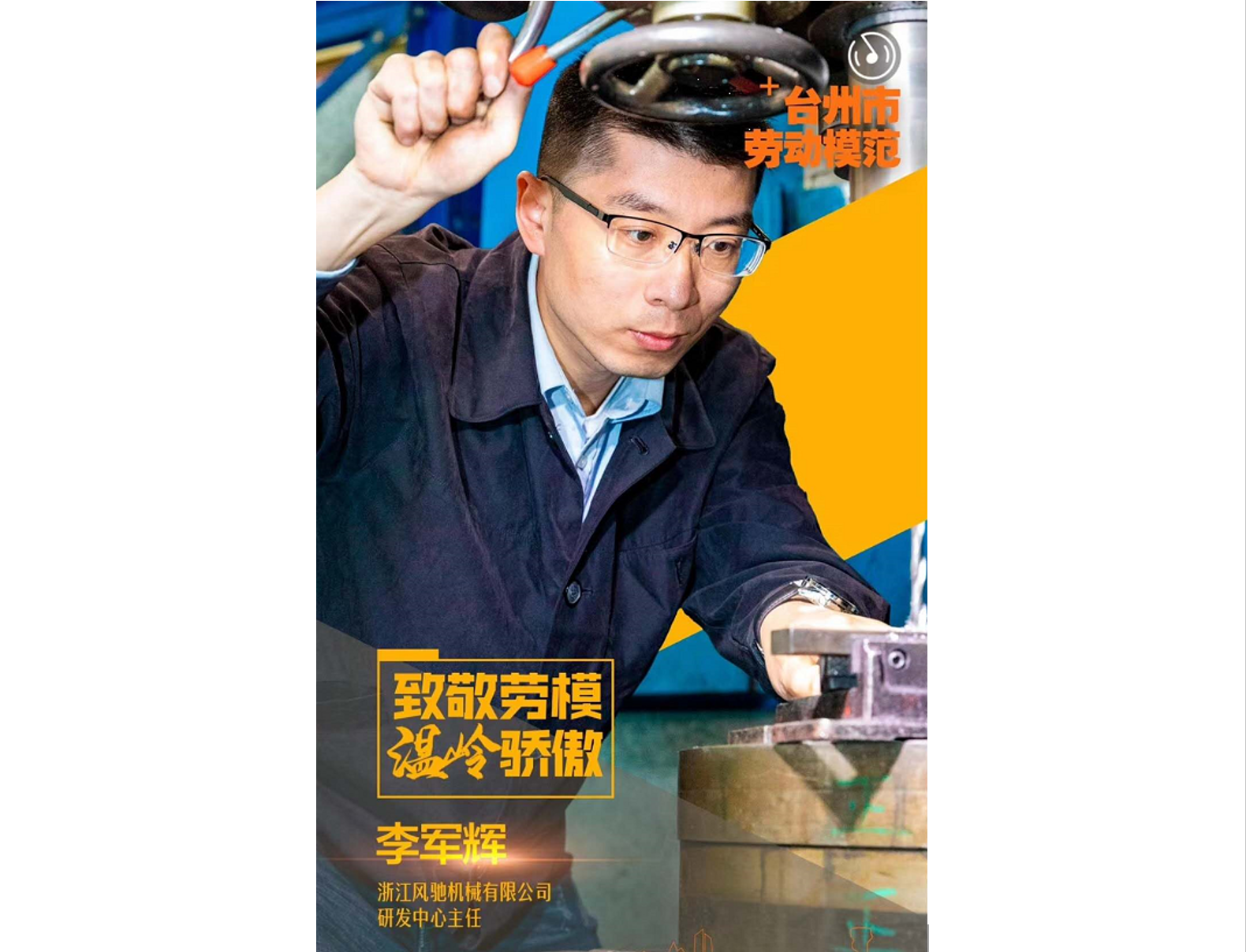 李軍輝同志于2011年進(jìn)入公司工作,先后擔(dān)任公司研發(fā)中心工具鉗工技術(shù)骨干,工裝夾具、自動(dòng)化設(shè)備制造班組長(zhǎng),公司工程科科長(zhǎng)、研發(fā)中心工程平臺(tái)總監(jiān)。2015年參加溫嶺市工具鉗工職業(yè)技能大賽,獲得溫嶺市二等獎(jiǎng);2016年榮獲溫嶺市“青年崗位能手”稱號(hào);2017年參加臺(tái)州市職業(yè)技能大賽,榮獲工具鉗工類第一名,被授予“臺(tái)州市技術(shù)能手”榮譽(yù)稱號(hào);2018年榮獲“杰出溫嶺工匠”稱號(hào);2018年獲頒“臺(tái)州五一勞動(dòng)獎(jiǎng)?wù)隆保?019年榮獲“杰出臺(tái)州工匠”稱號(hào),2020年榮獲臺(tái)州勞模。