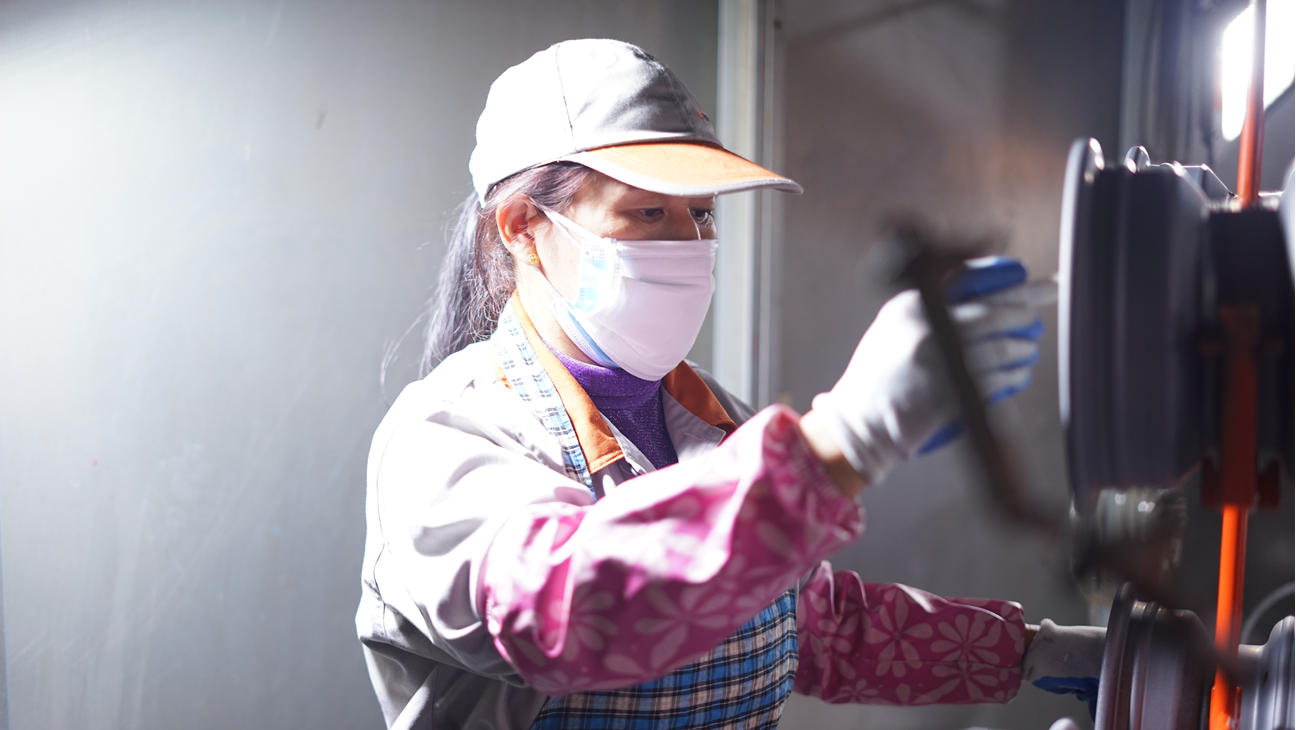 “剛開始進(jìn)入崗位的時(shí)候,還是有些不太適應(yīng),只能強(qiáng)迫自己融入團(tuán)隊(duì),不斷提升自己技能,才能做好這個(gè)崗位。我在打磨產(chǎn)品的過程當(dāng)中,也慢慢發(fā)現(xiàn)只有精益求精打磨出來(lái)的產(chǎn)品才能夠使下一道工序減少不良的產(chǎn)生,也給其他工序帶來(lái)一定的幫助,自己也感到很快樂。特別是在工作時(shí)幫助他人不斷提高工作質(zhì)量,不斷專研打磨技巧,怎么樣用最快捷最方便的打磨技巧打磨產(chǎn)品,感覺到自己的進(jìn)步,于是慢慢的就喜歡上這份工作?!边@是吳愛芳這份工作的簡(jiǎn)單總結(jié)。