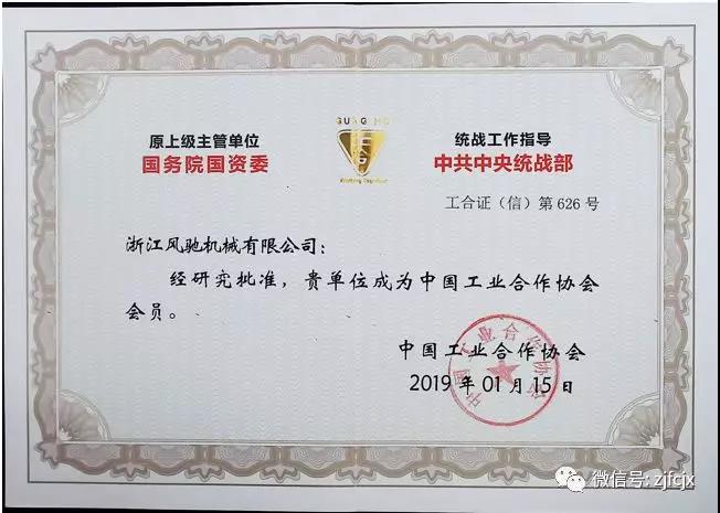 2019年1月榮獲中國(guó)工業(yè)合作協(xié)會(huì)頒發(fā)的“2019中國(guó)工業(yè)合作協(xié)會(huì)會(huì)員”