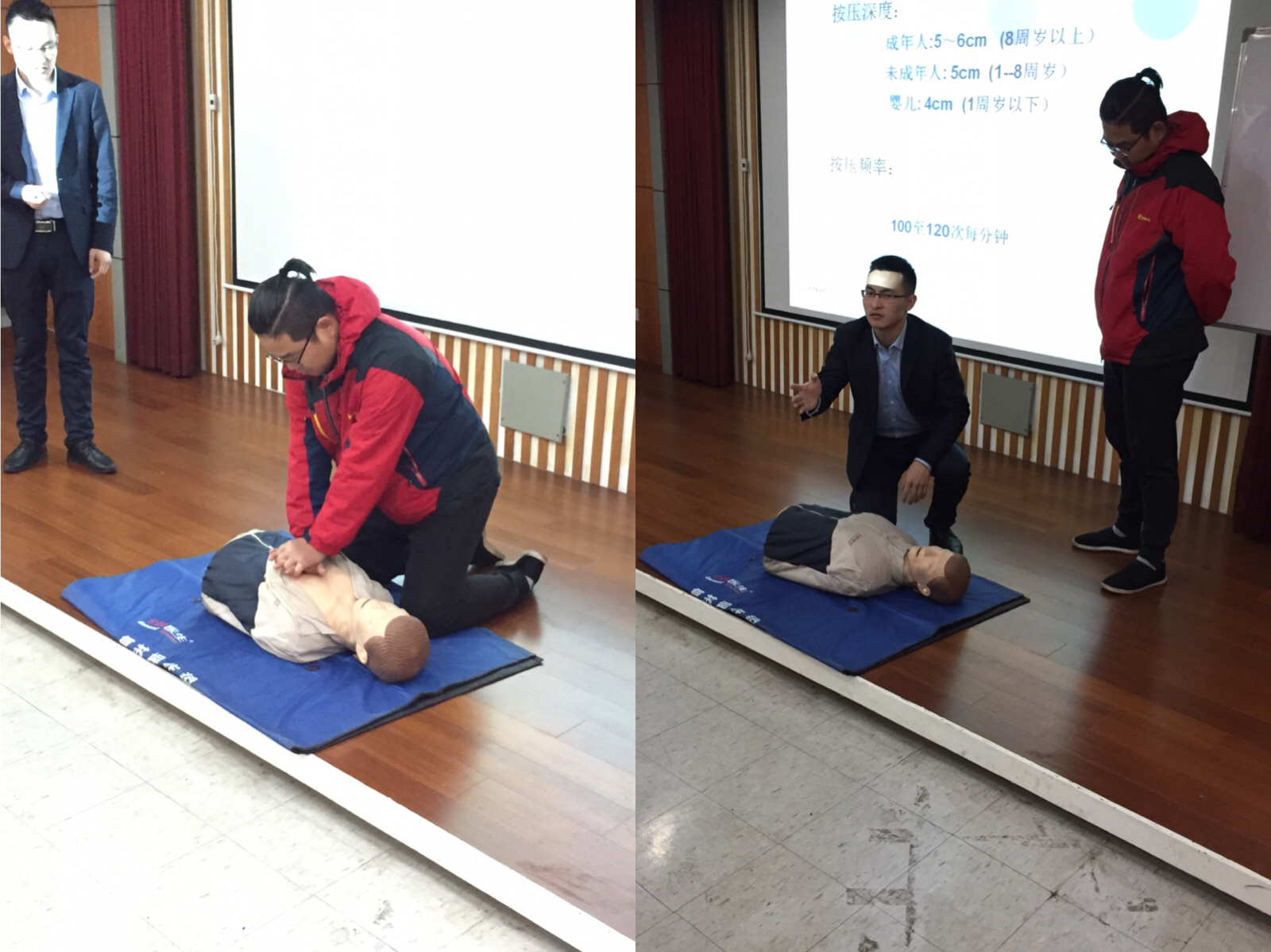 培訓課上湯老師首先給大家講解了與我們生活、工作都息息相關的現場心肺復蘇、CPR人工呼吸和止血包扎固定轉移搬運等急救知識和技能,在講解的過程中,湯老師先進行了模擬操作,接著現場邀請學員親身實施心肺復蘇術,人工呼吸,并耐心指導各技術要領,讓學員們能更好地了解和掌握現場急救知識和技能,提高了自救和互救能力,有利于在突發(fā)事件的第一時間、對傷病員進行及時、正確、有效的現場救護,把傷害降到最低。