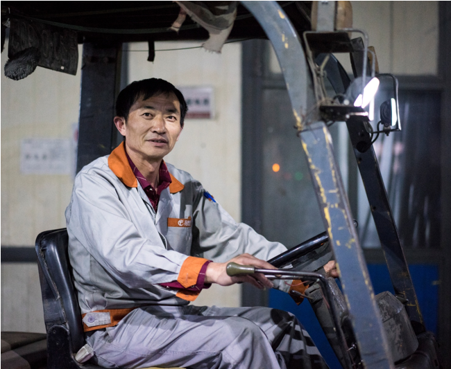 走過(guò)涂裝車(chē)間你總會(huì)聽(tīng)見(jiàn)這幾句話,“師傅,麻煩叉一下這框毛胚”,“師傅,麻煩幫我叉一下這框產(chǎn)品到下掛處”,你就會(huì)看見(jiàn)劉師傅在嫻熟的操作下,鏟腳很準(zhǔn)地插進(jìn)鐵框下面的支架,提起,倒車(chē),轉(zhuǎn)彎,開(kāi)出車(chē)間,穩(wěn)穩(wěn)地放到指定地點(diǎn)上,整個(gè)過(guò)程一氣呵成。這就是我們的叉車(chē)師傅劉曙光。